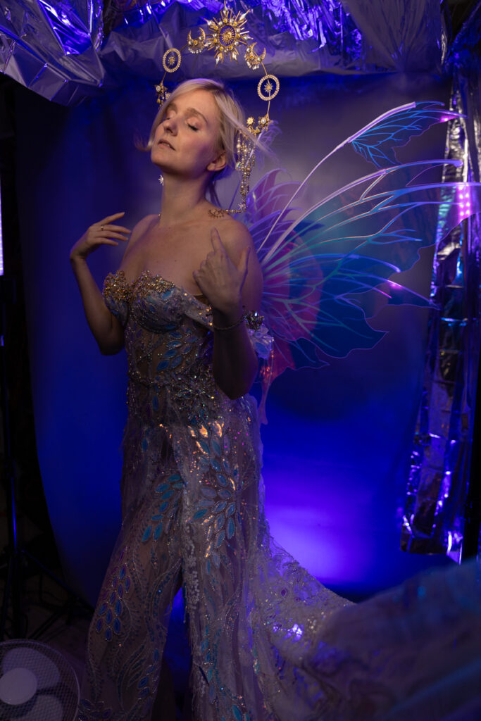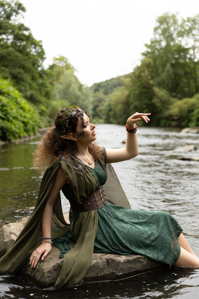 Das Styling ist ein wesentlicher Bestandteil der Verwandlung. Ich arbeite eng mit meinen Kund:innen zusammen, um Outfits und Accessoires zu kreieren, die perfekt zu ihrem Wunschcharakter passen. Von schimmernden Elfenkleidern über epische Kriegeroutfits bis hin zu romantischen Ballkleidern – jedes Detail zählt.